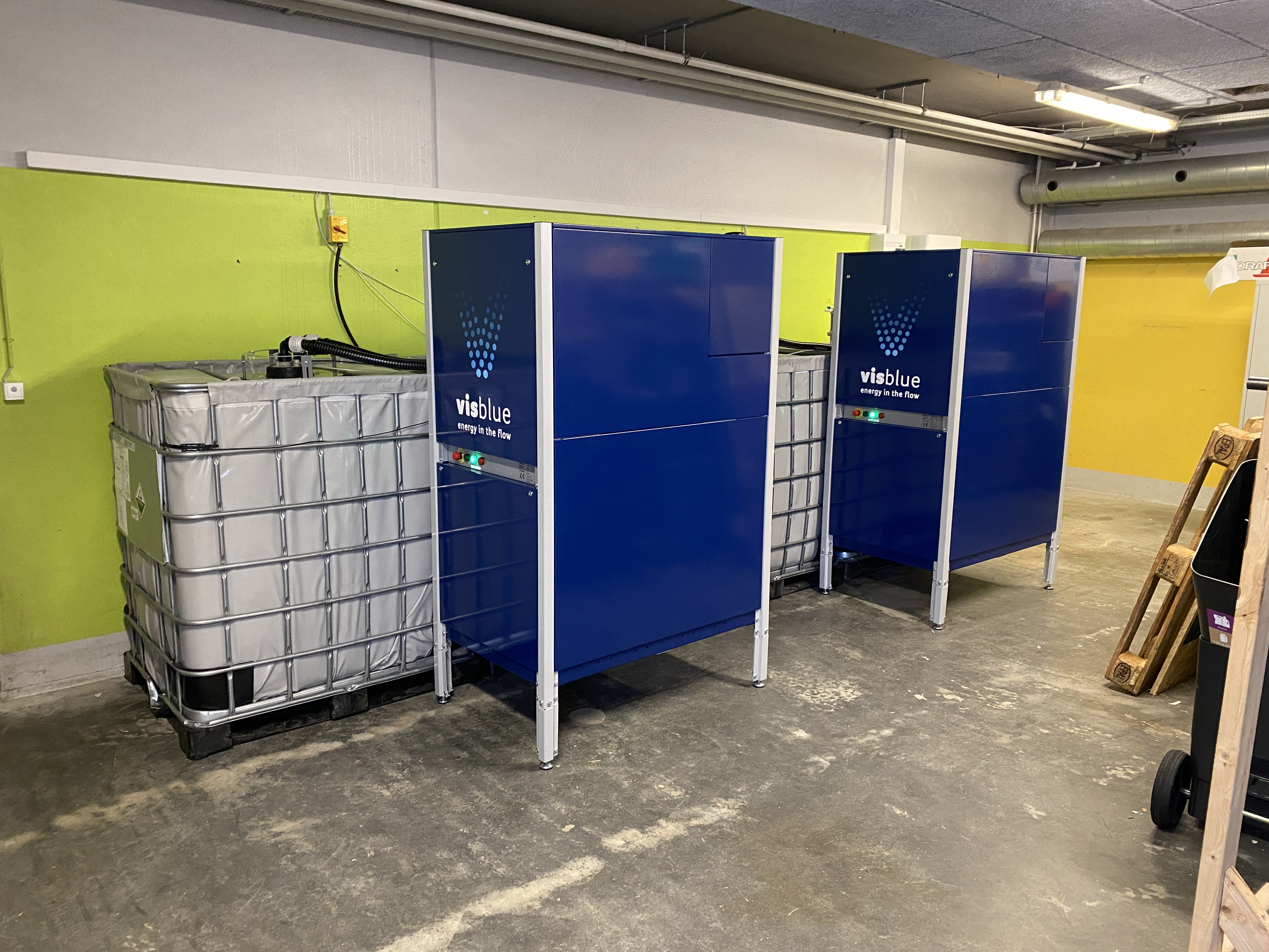En batteriløsning fra VisBlue består af de følgende vigtige komponenter: vanadium elektrolytter, tanke, pumper og en elektrodestak. Batteriet er designet sådan, at disse komponenter er nemme at fjerne og genbruge.